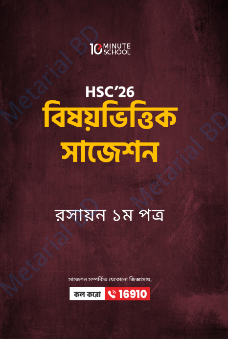 10 Minute School Chemistry 1st Paper Suggestion Book পরীক্ষার আগে দ্রুত প্রস্তুতির জন্য তৈরি করা হয়েছে। এতে গুরুত্বপূর্ণ CQ, MCQ এবং সম্ভাব্য প্রশ্ন অন্তর্ভুক্ত রয়েছে।